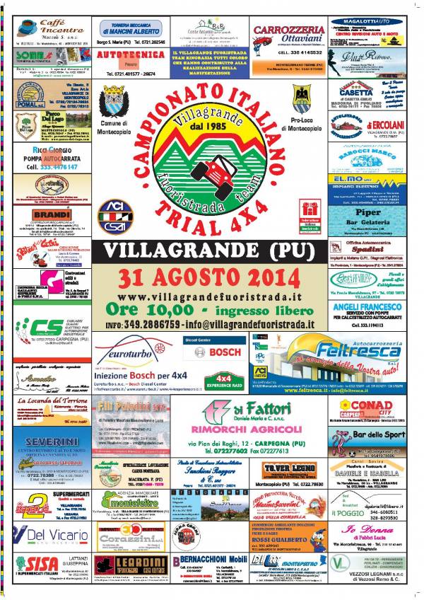 Domenica 31 Agosto il Villagrande Fusoristrada Team, organizzerà la 5° prova del campionato italiano Trial 4×4. La Gara che si svolgerà nella vecchia pista del Club,a Montecopiolo in località Serra San Marco, inizierà alle ore 10.00 (ingresso libero) . Per maggiori informazioni vi invitiamo a consultare il sito del Villagrande fuoristrada team.