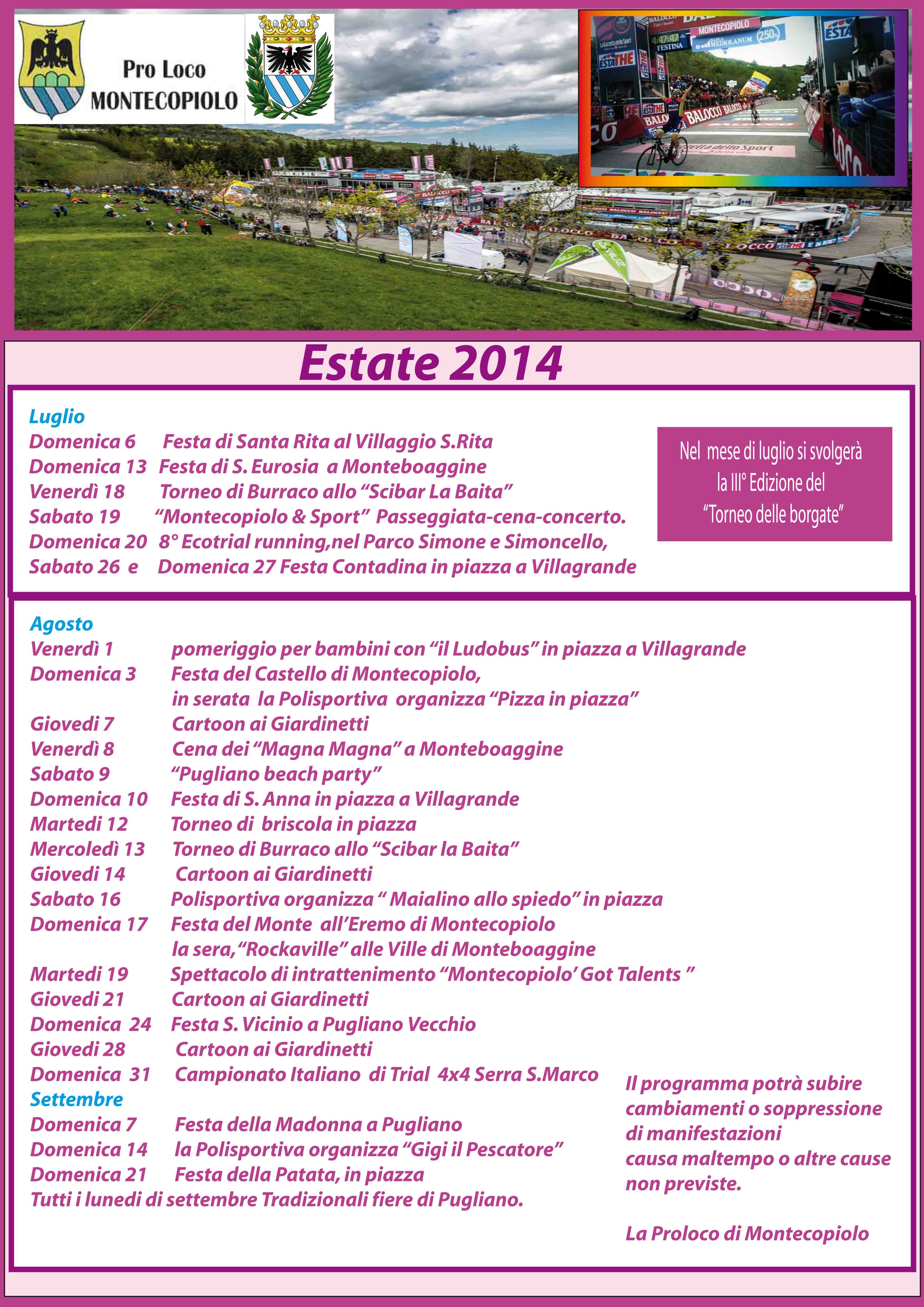 Programma delle manifestazioni organizzate a Montecopiolo durante l’ estate 2014.